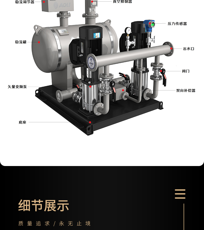 ALCW-F第五代無負(fù)壓供水設(shè)備是以市政管網(wǎng)為水源,充分利用了市政管網(wǎng)原有的壓力,形成密閉的連續(xù)接力增壓供水方式,節(jié)能效果好,沒有水質(zhì)的二次污染,是變頻恒壓供水設(shè)備的發(fā)展與延伸。適用于任何壓力不足的區(qū)域;住宅小區(qū)、寫字樓、商場(chǎng)、學(xué)校、部隊(duì)、工廠、浴池、景區(qū)、政府辦公樓、老舊泵房改造等;工礦企業(yè)的生產(chǎn)生活用水,各種循環(huán)用水系統(tǒng)。